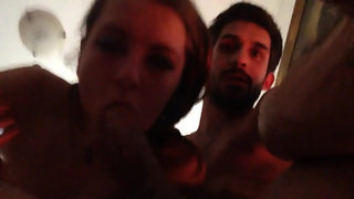 Stepfather extinguished her cunny fire with brother-in-law's cock. After father left for duty, step-sister called brother-in-law a