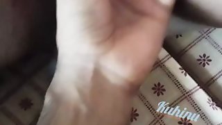 Mature Indian auntie caresses the stud's man meat at home